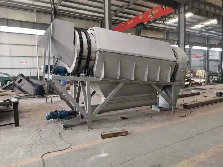 生活垃圾分選處理系統用于接收生活垃圾車運輸的生活垃圾,通過進料斗、板鏈輸送機帶式輸送機將物料輸送至破碎機進行破碎,破碎后的垃圾通過皮帶輸送機進入篩孔孔徑為20mm篩選機里進行除灰土,小于20mm的灰土即篩下物通過皮帶輸送機輸送走進行填埋。大于20mm篩上物通過皮帶輸送機輸送到場地進行生物干化。生化干化后的垃圾,通過抓斗進入料倉,然后再通過皮帶輸送機進入滾筒篩進行篩選,小于80mm的篩下物經過磁選機后,再進入氣化爐形成可替代燃料。大于80mm的篩上物,經過磁選機 然后再進行風選機,分化成輕重兩種物料,然后可以替代燃料或原料。