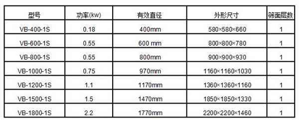 VB三次元加緣式振動(dòng)篩技術(shù)參數(shù):
